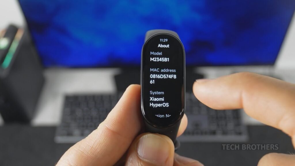 First of all, the new Xiaomi fitness bracelet runs on Xiaomi HyperOS. We can see it at startup, as well as in the settings.